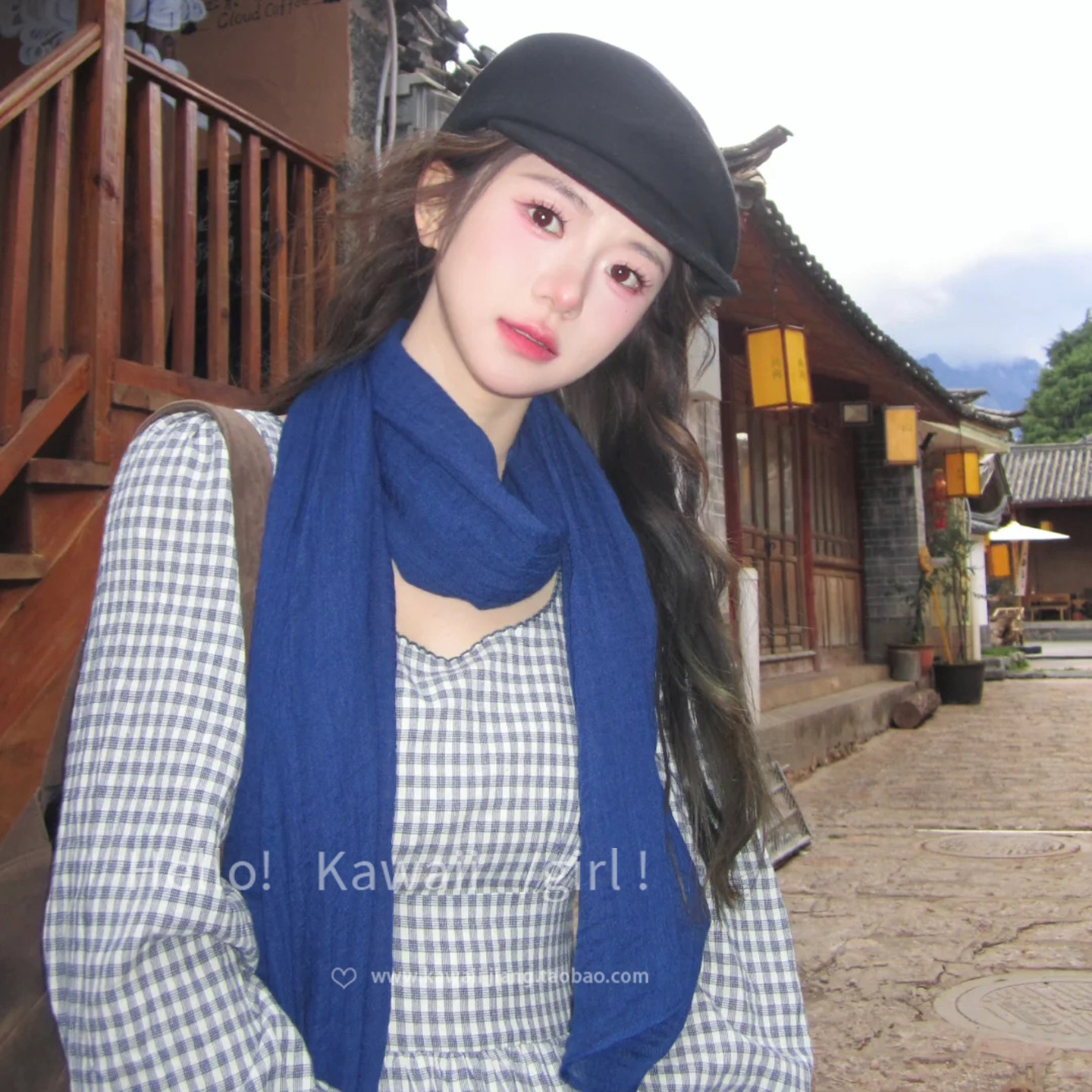 为您提供商品日系复古克莱因蓝色棉麻围巾文艺百搭气质丝巾温柔甜美显脸白配饰的详细介绍,