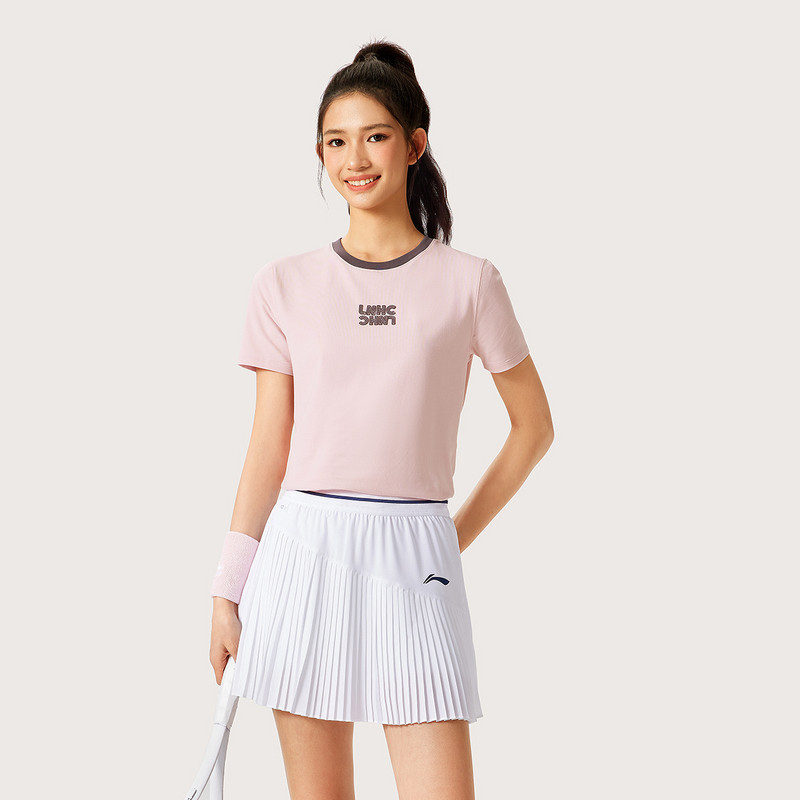 李宁运动时尚 美式 复古舒适透气短袖 T恤AHSV294 系列女子2025新款
