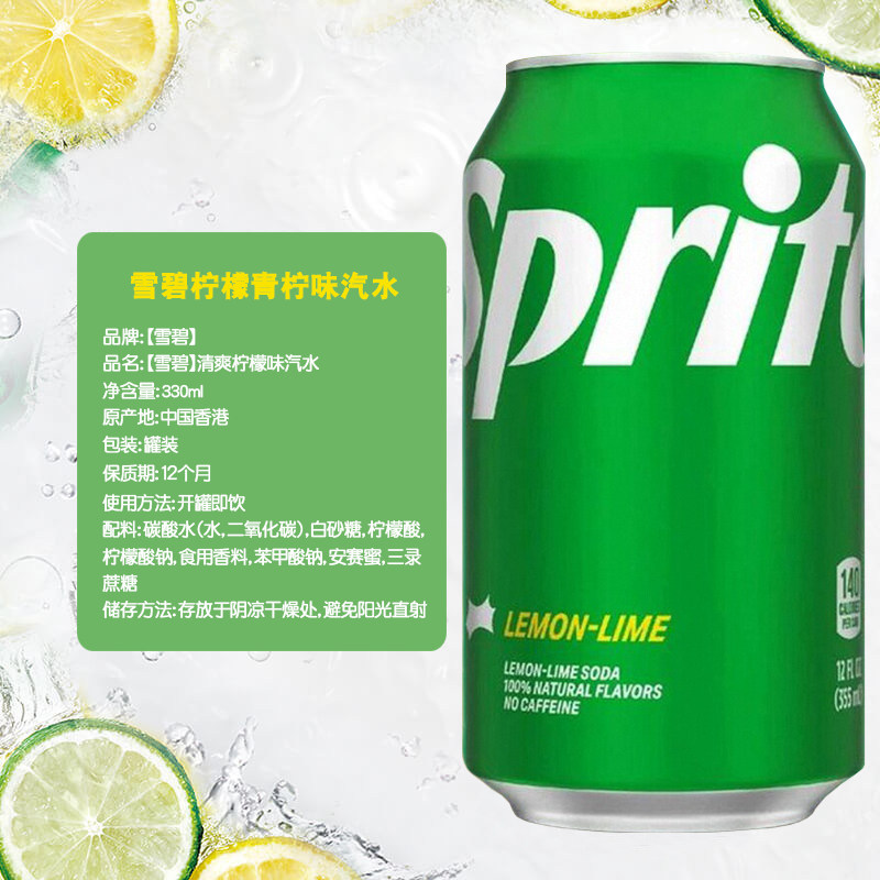 为您提供商品港版 易拉罐碳酸饮料 8罐装 香港sprite雪碧柠檬青柠味汽水330ml的详细介绍,