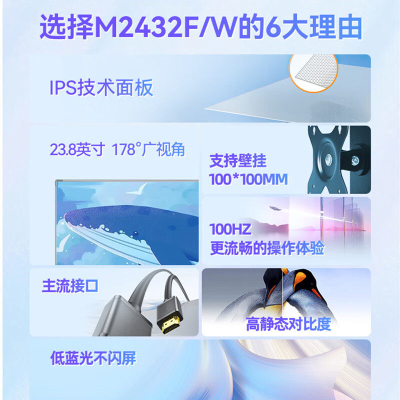 为您提供商品航嘉23.8英寸全高清100Hz刷新IPS屏低蓝光办公白色显示器M2432F的详细介绍,