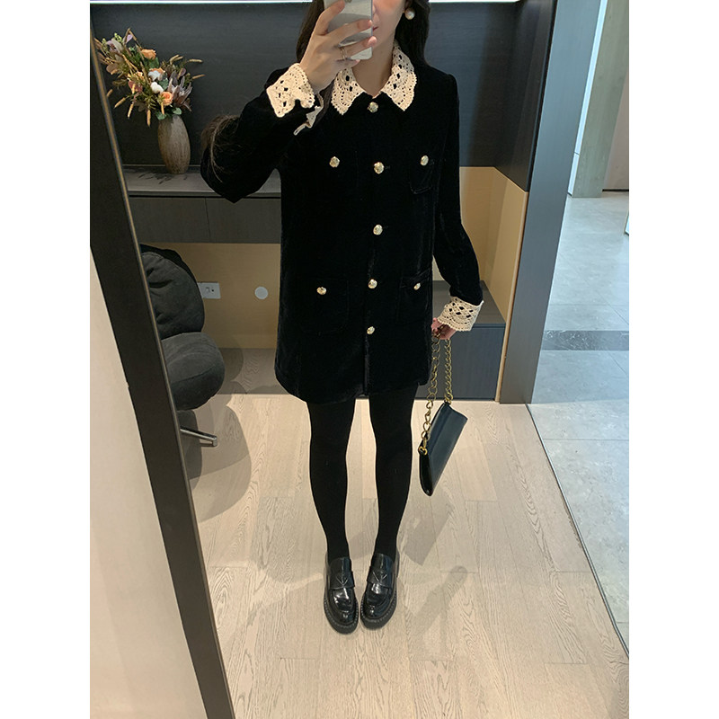 秋冬蕾丝钩花丝绒羽绒服女中长款 收腰显瘦外套 MIU系穿搭 XINYI