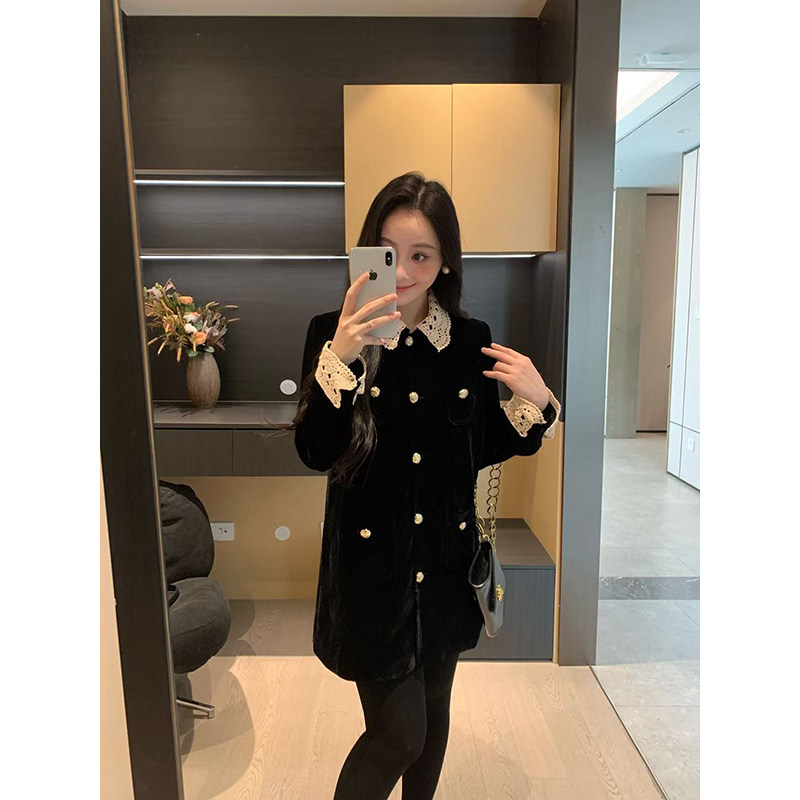 秋冬蕾丝钩花丝绒羽绒服女中长款 收腰显瘦外套 MIU系穿搭 XINYI由