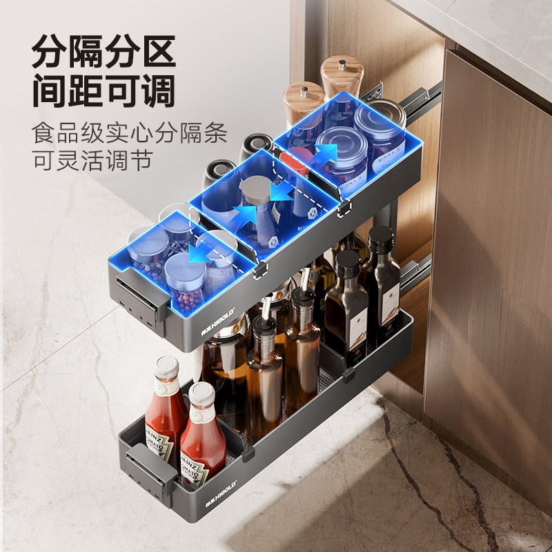 为您提供商品悍高厨房拉篮橱柜拉篮窄柜抽屉拉篮铝合金调味拉篮 HIGOLD的详细介绍,