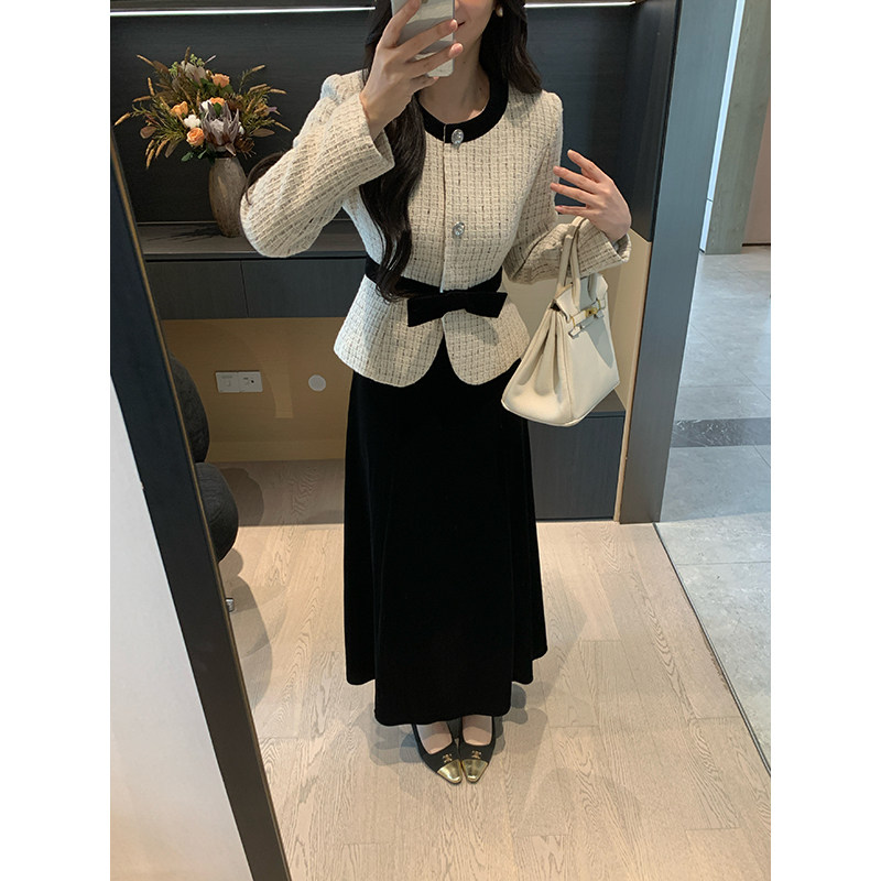 格纹小香外套 XINYI 香颂千金 秋季 女 丝绒长半裙显瘦气质套装由