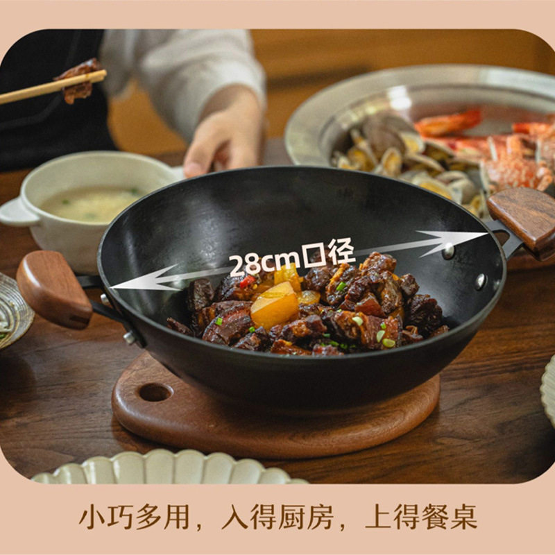 炖煮炒菜纯铁锅加厚 双耳星球铸铁锅炒锅无涂层不粘锅加深家用老式由