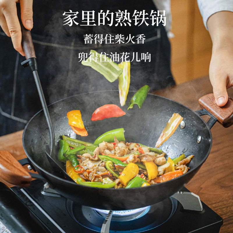 炒锅家用不粘锅无涂层燃气灶适用 章丘炒菜锅传统铁锅官方旗舰老式