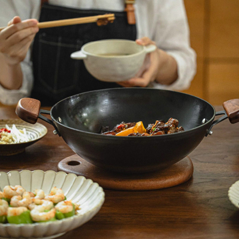 炖煮炒菜纯铁锅加厚 双耳星球铸铁锅炒锅无涂层不粘锅加深家用老式