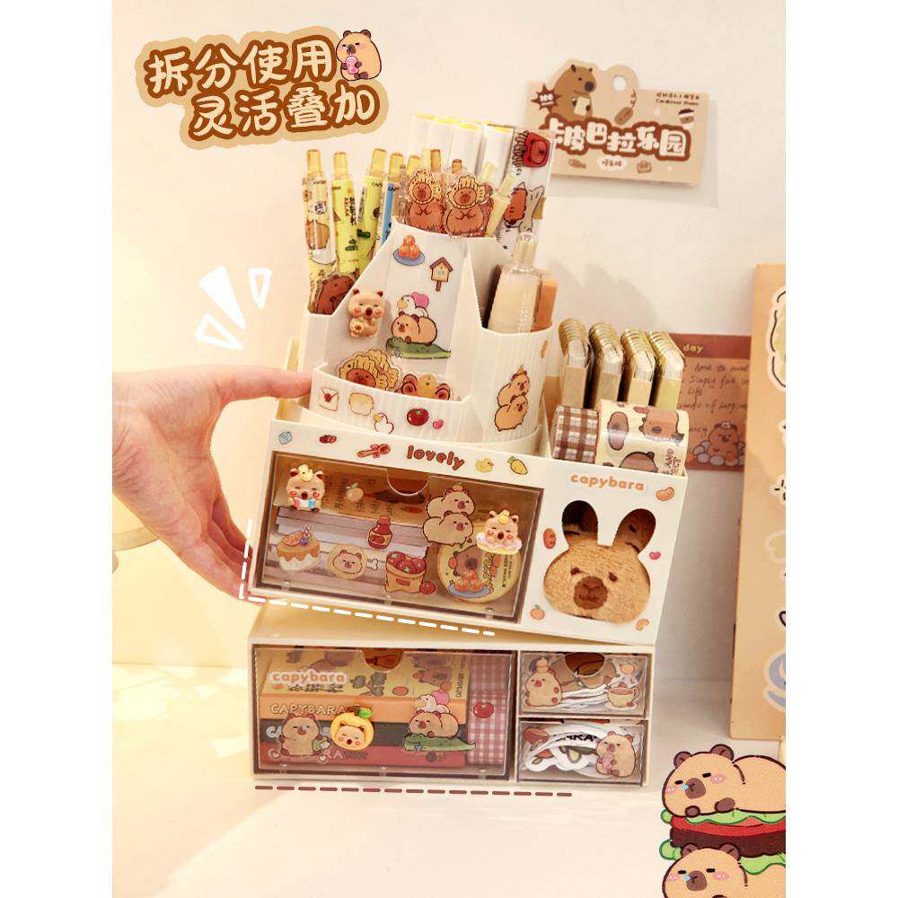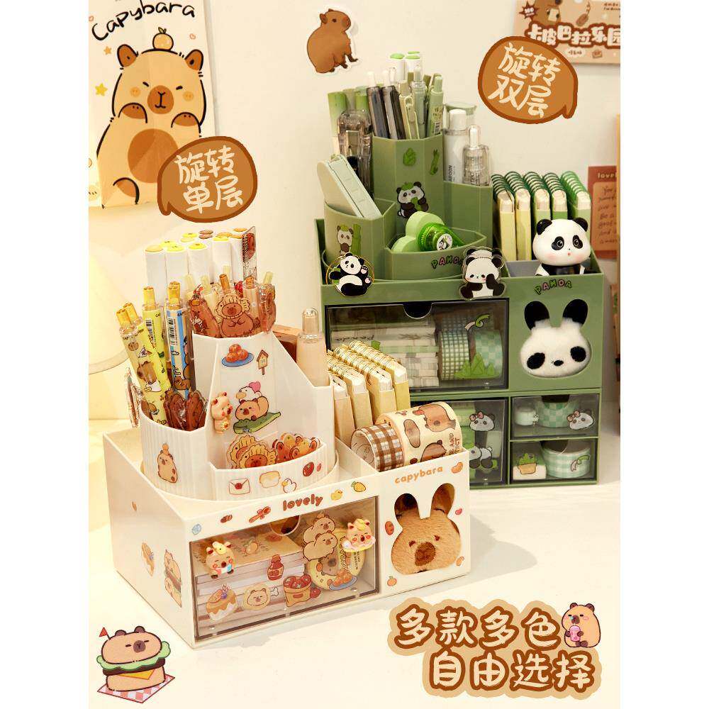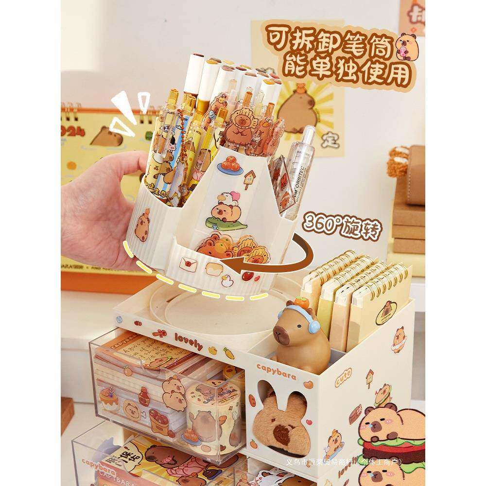 卡皮巴拉旋转笔筒大容量儿童女孩学生书桌桌面多功能收纳盒其它