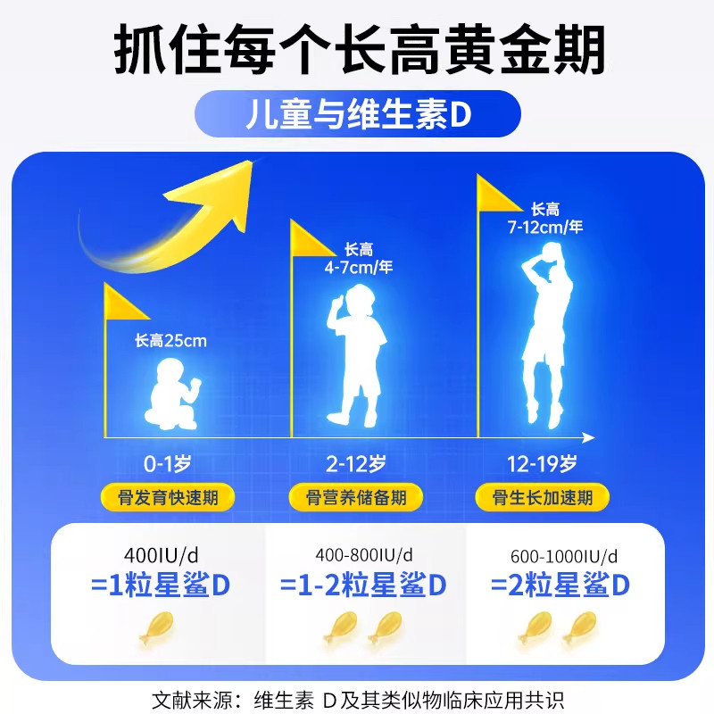 星鲨维生素D3星鲨24粒骨骼健康维生素d24vd3儿童钙片人压力星鲨钙由