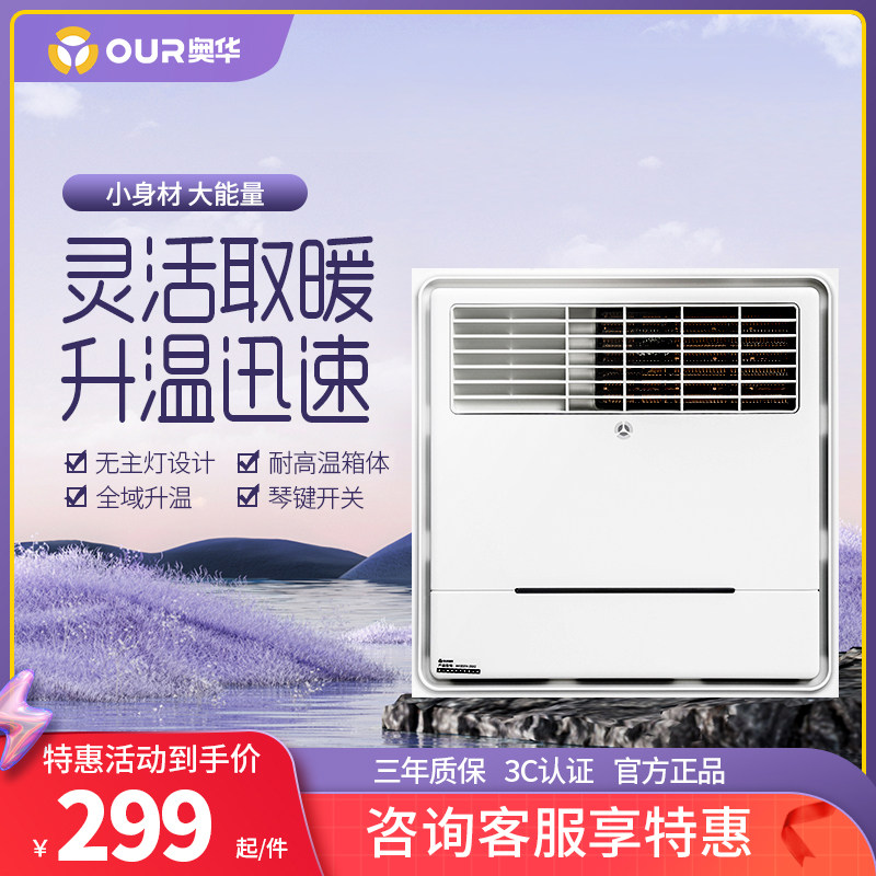 为您提供商品顶暖风机 奥华取暖防水浴霸风暖排气扇一体浴霸集成吊嵌入式的详细介绍,