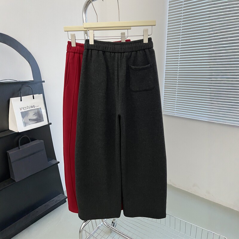 为您提供商品高端欧货珠子带松紧高腰慵懒风羊绒休闲裤 子 女春秋宽松阔腿弯刀裤的详细介绍,