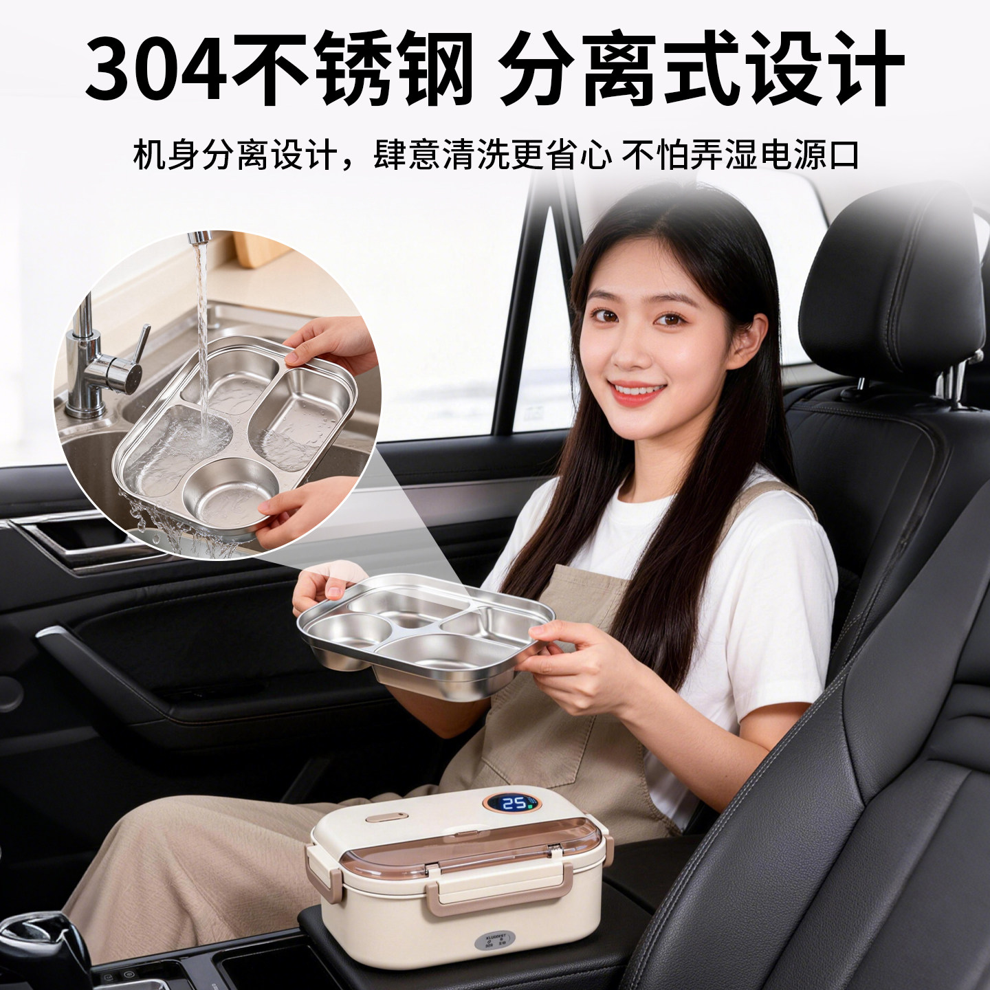 车载加热饭盒车用电热饭盒保温热饭神器微波炉冬天带饭304不锈钢由
