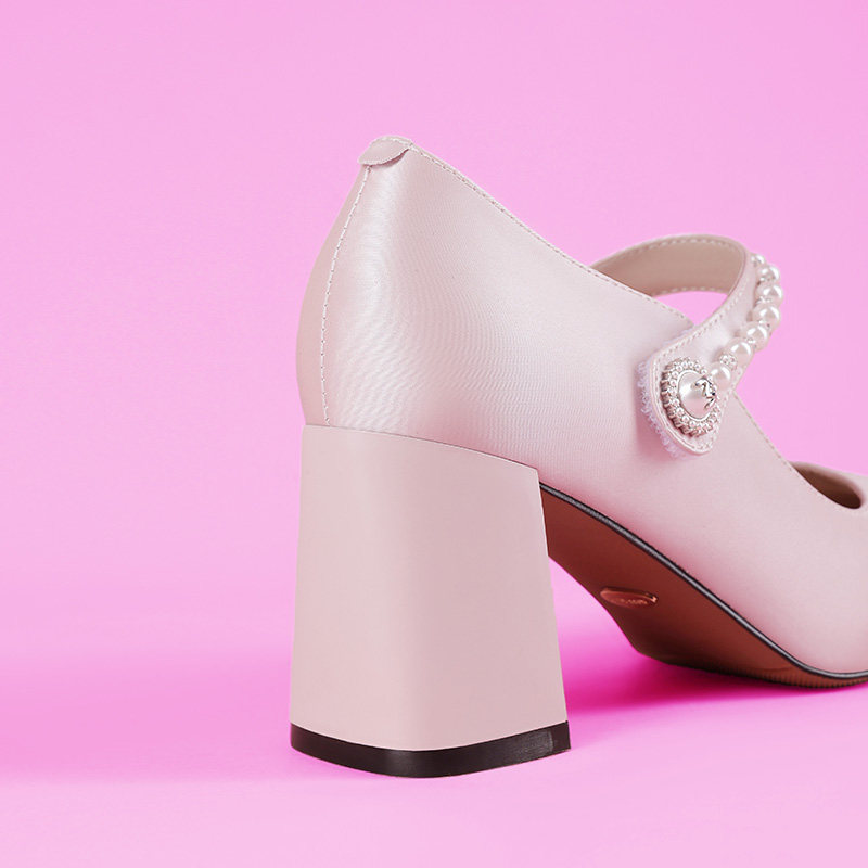 为您提供商品粉色甜美风圆头珍珠高跟粗跟单鞋 女2026春新款 KISSKITTY玛丽珍鞋的详细介绍,