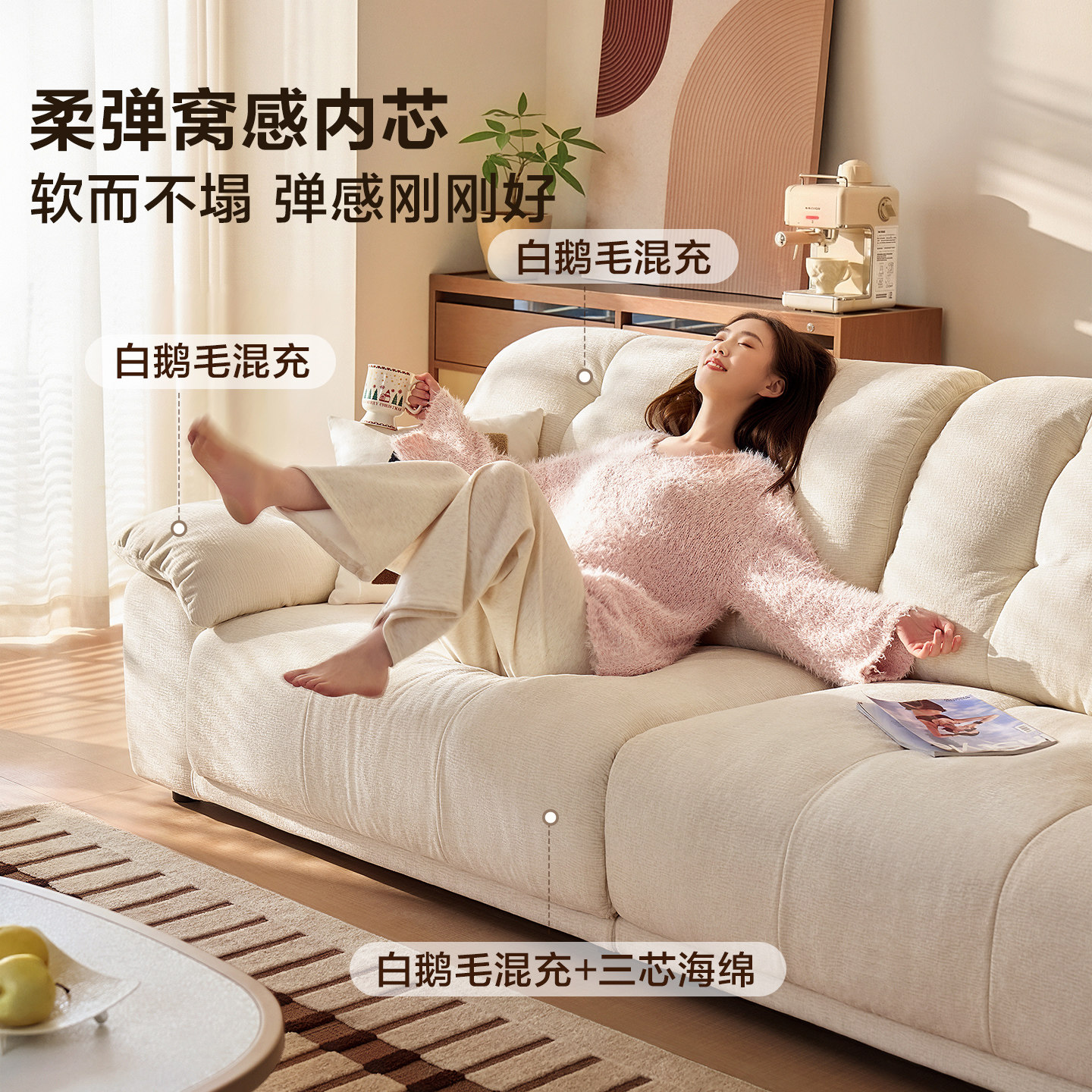 政府补贴帕沙曼云朵沙发布艺客厅奶油雪尼尔可拆洗太空云沙发功能