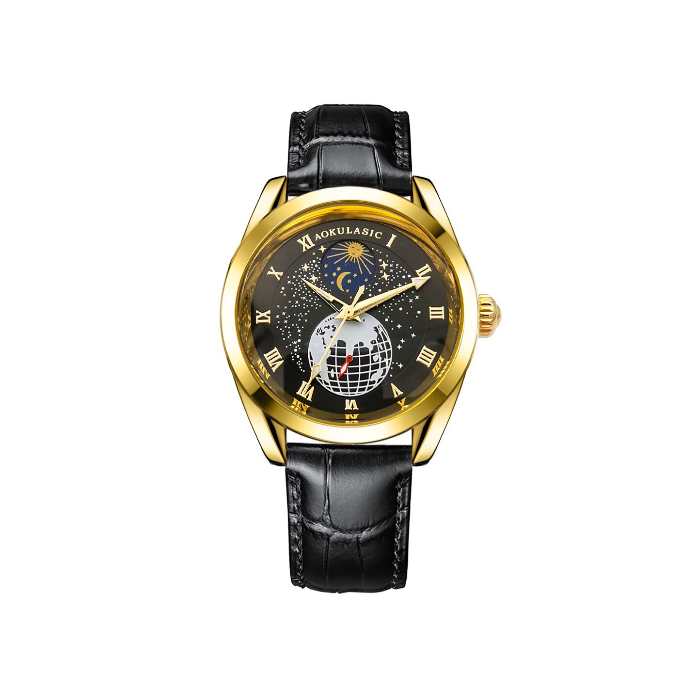 奥古拉斯 男士 全自动机械表时尚 休闲满天星月相男表腕表 欧美风范由