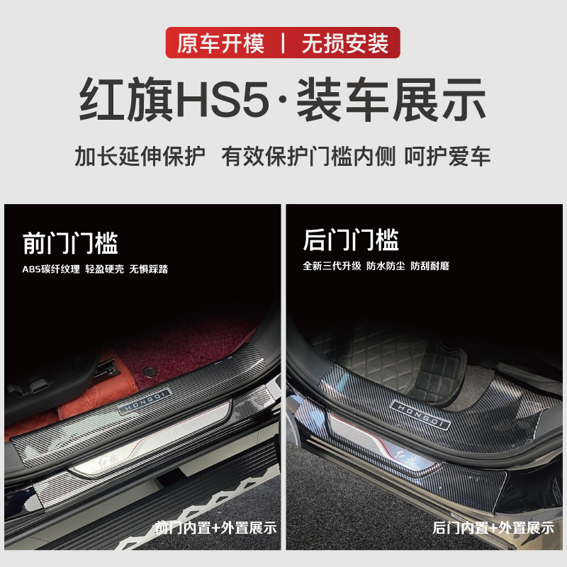 门槛条后备箱护板防踩保护条内饰配件迎宾踏板1 适用于红旗HS5改装由
