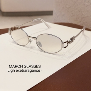 复古老钱风椭圆金属墨镜Y2K时髦优雅街拍太阳眼镜防紫外线女 韩版由