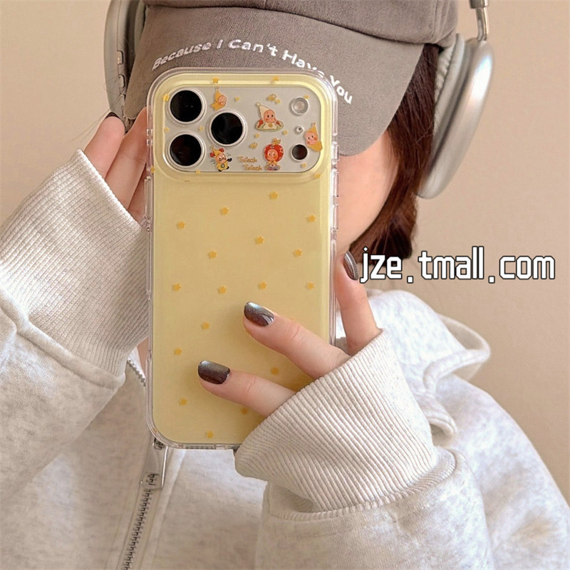 jze 16pro女13双层15pro创意14防摔手机套 简约黄色星星卡通星星小人挂链适用苹果17ProMax手机壳iphone15新款由