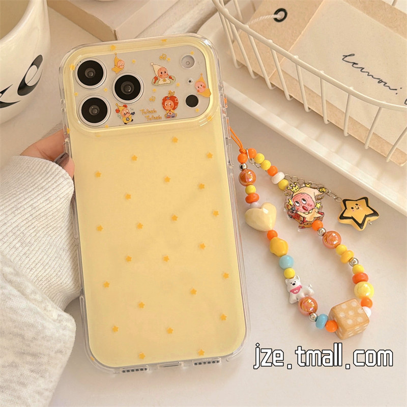 jze 16pro女13双层15pro创意14防摔手机套 简约黄色星星卡通星星小人挂链适用苹果17ProMax手机壳iphone15新款