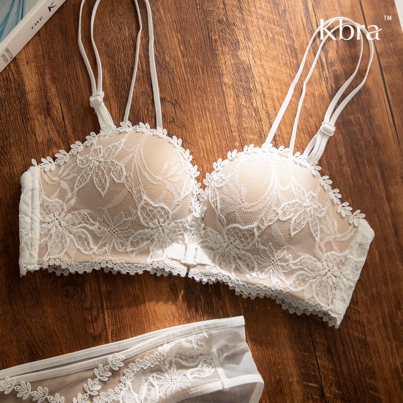 Kbra法式 蕾丝性感内衣女聚拢小胸显大收副乳防下垂纯欲文胸套装