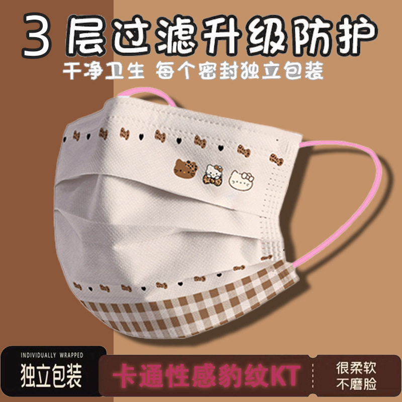 秋冬一次性成人防尘通勤学生 可爱口罩女黑皮kitty高颜值2025新款