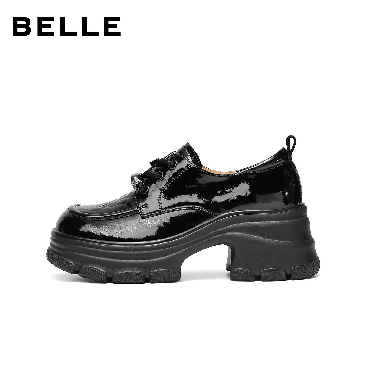 厚底增高黑色小皮单鞋 子B3056AA6 女26新款 百丽英伦风运动牛津鞋由