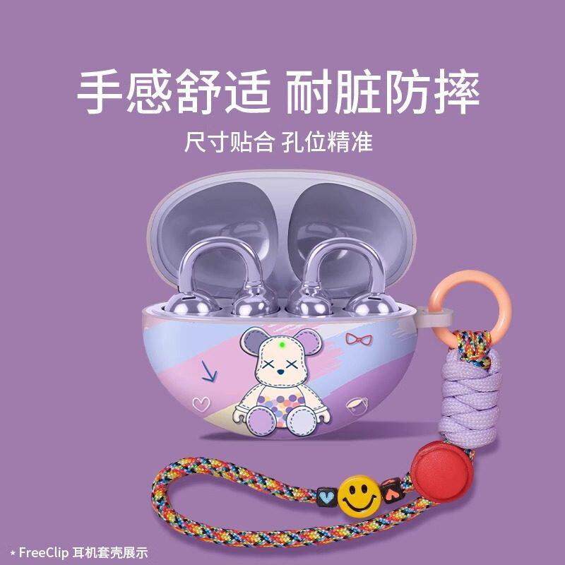 适用华为FreeClip2保护套耳夹耳机套clip二代保护壳HUAWEIfreeclip2透明充电盒外壳透黑锁扣防摔手机支架