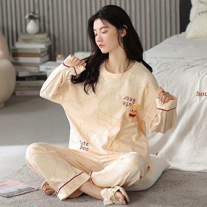 纯棉女士长袖 睡衣新款 女款 家居服秋冬全棉大码 套装 秋款 芬腾春秋季