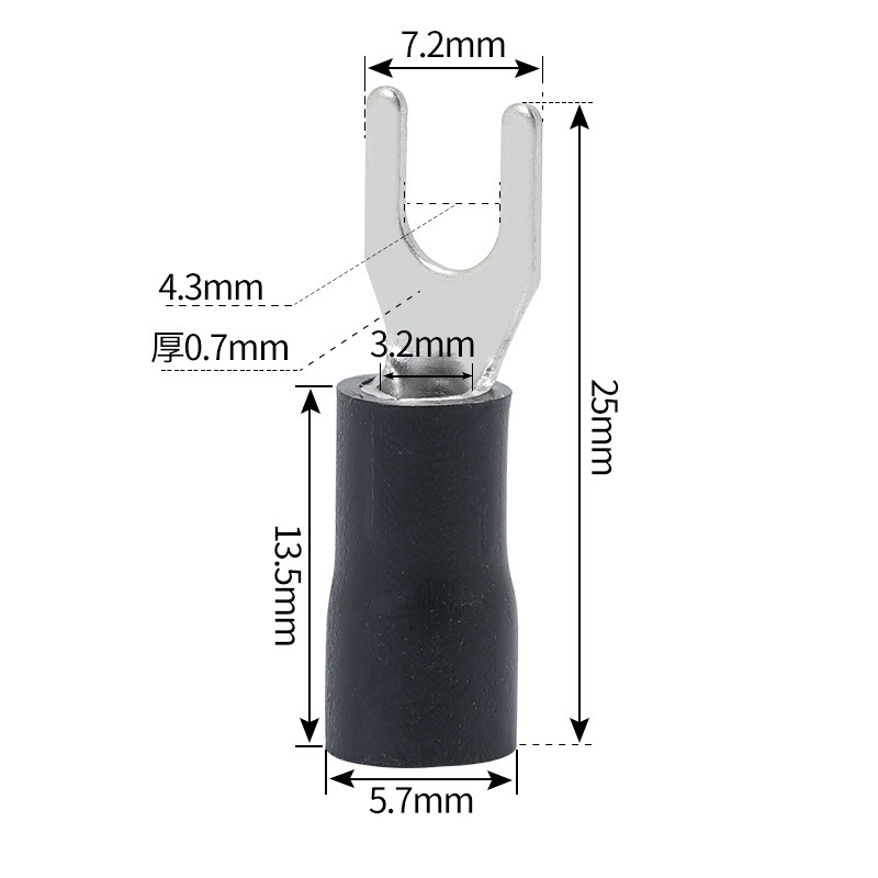 SV3.5 接线冷压端子铜鼻子带护套500只 4S叉型Y型U型预绝缘端头由