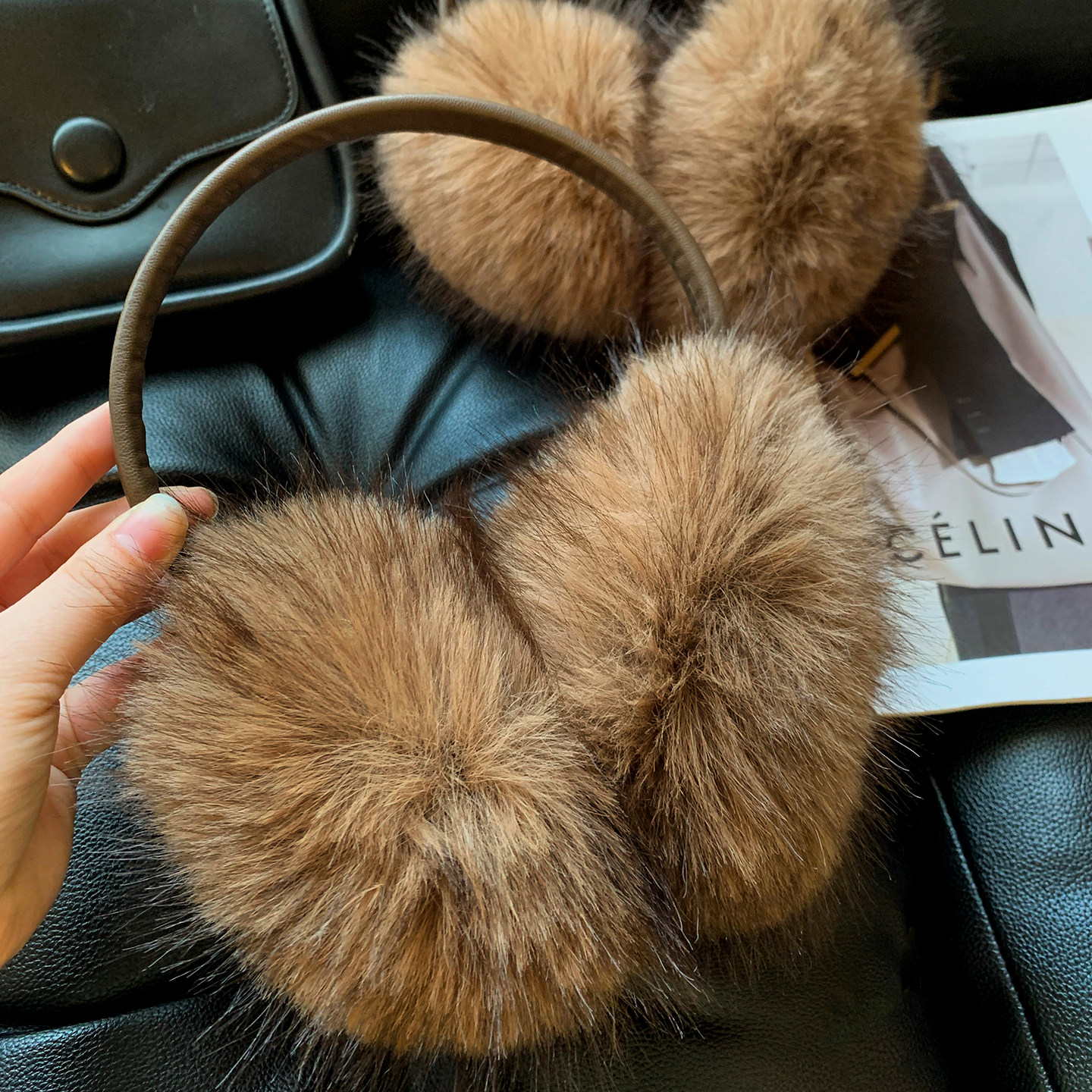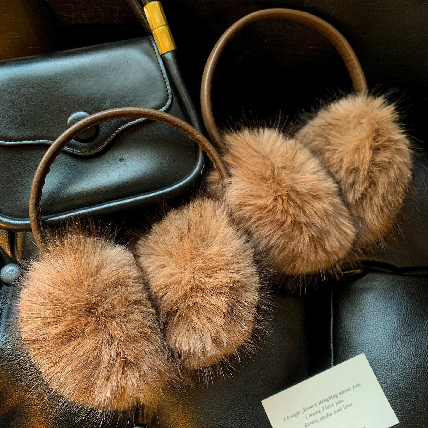 高级感加厚护耳保暖防冻耳包耳套 复古咖色毛茸茸仿貂毛耳罩女冬季