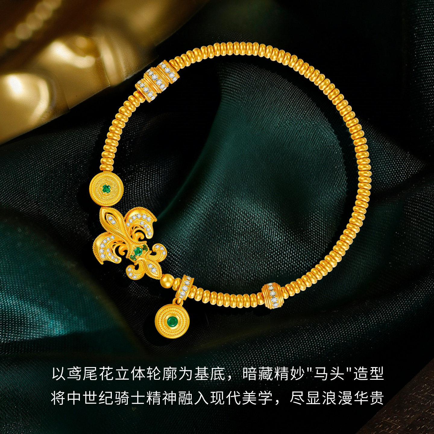 金至尊鸢尾骑士黄金手链 足金999手链古法金钻石手链生日礼物 新款