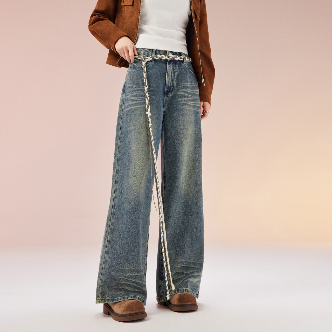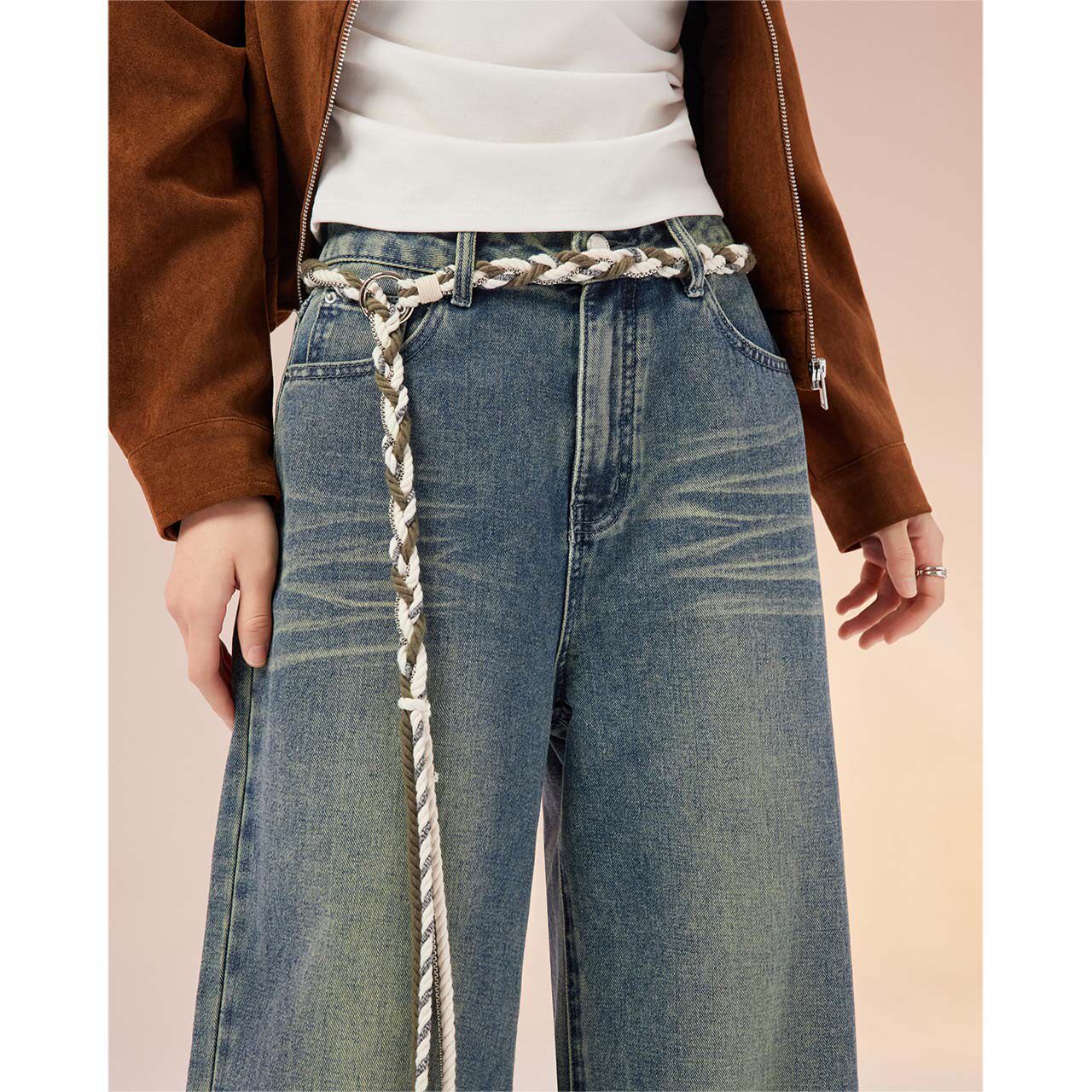 为您提供商品美式 IEF 爱依服2026春季 新款 复古风系带甜酷辣妹百搭女牛仔阔腿裤的详细介绍,