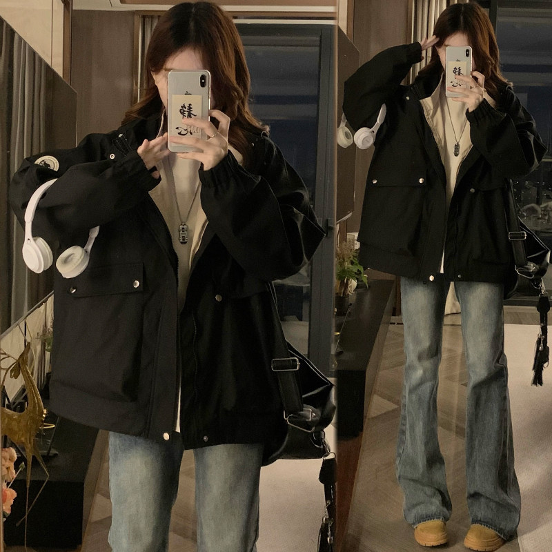 潮流宽松休闲连帽开衫 上衣200斤 孕妇冲锋衣外套2026春秋新款 大码由