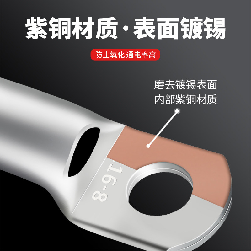 DT铜鼻子紫铜堵油接线端子国标镀锡线耳16 95平方