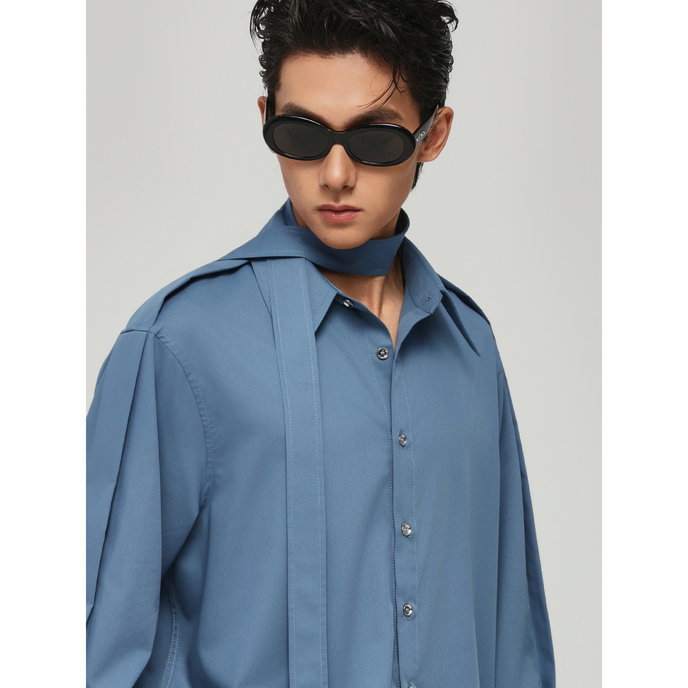 男痞帅设计感青年休闲长袖 w2x2026春季 衬衣潮流 衬衫 西装 新款 法式由