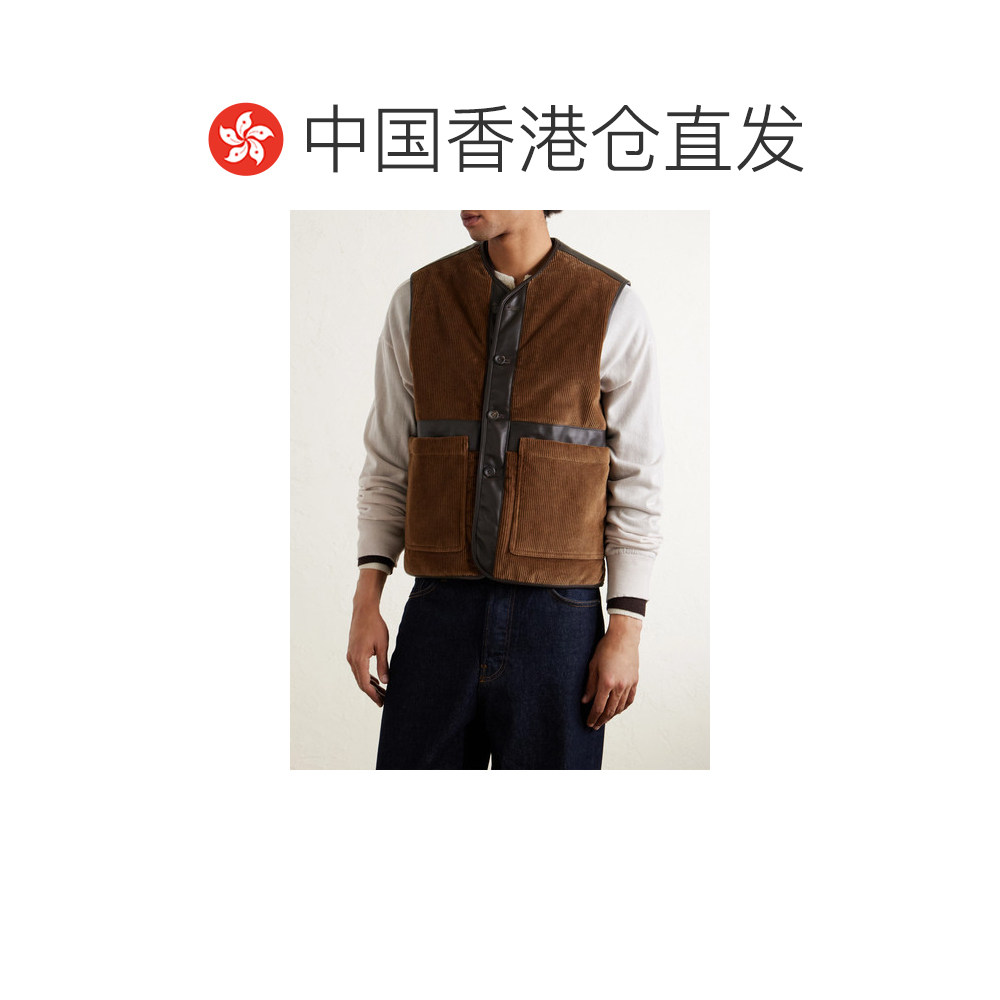 1h可退 男士 带里衬皮革边棉质灯芯绒马甲 DR2A1X 香港直邮drakes由