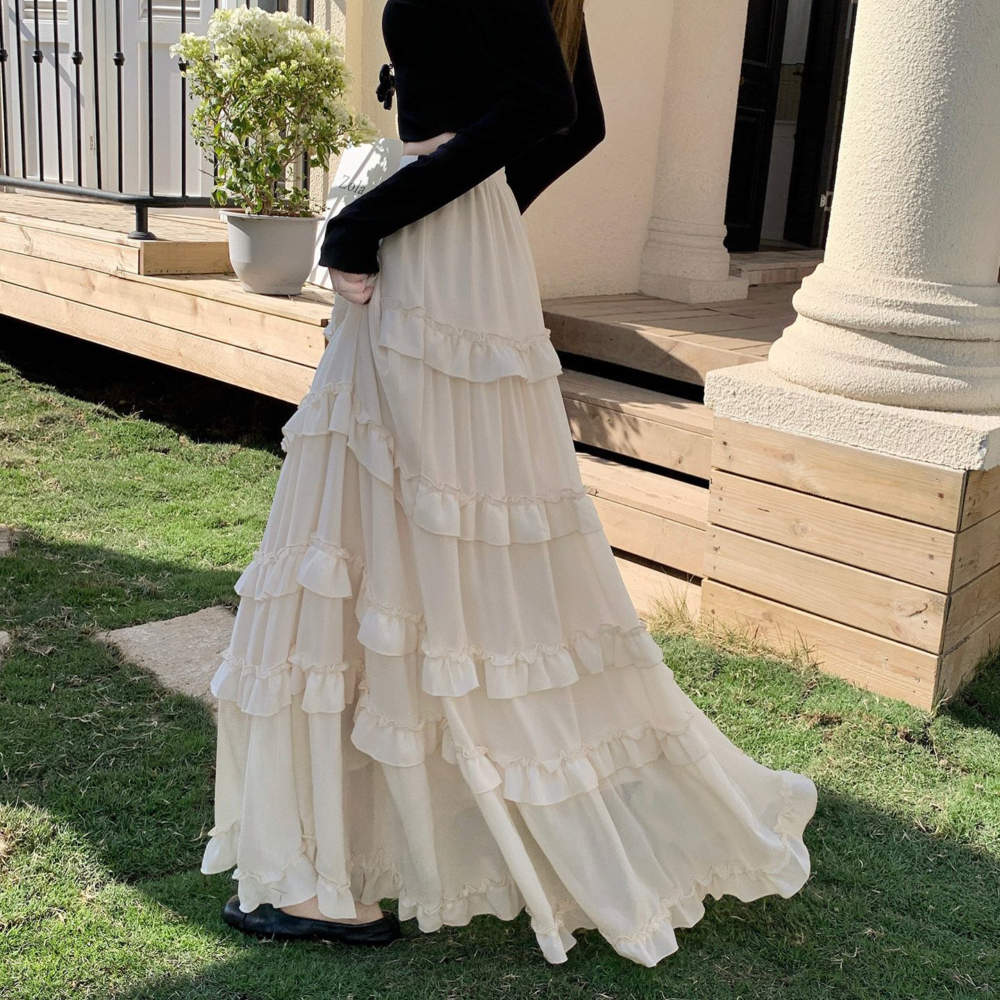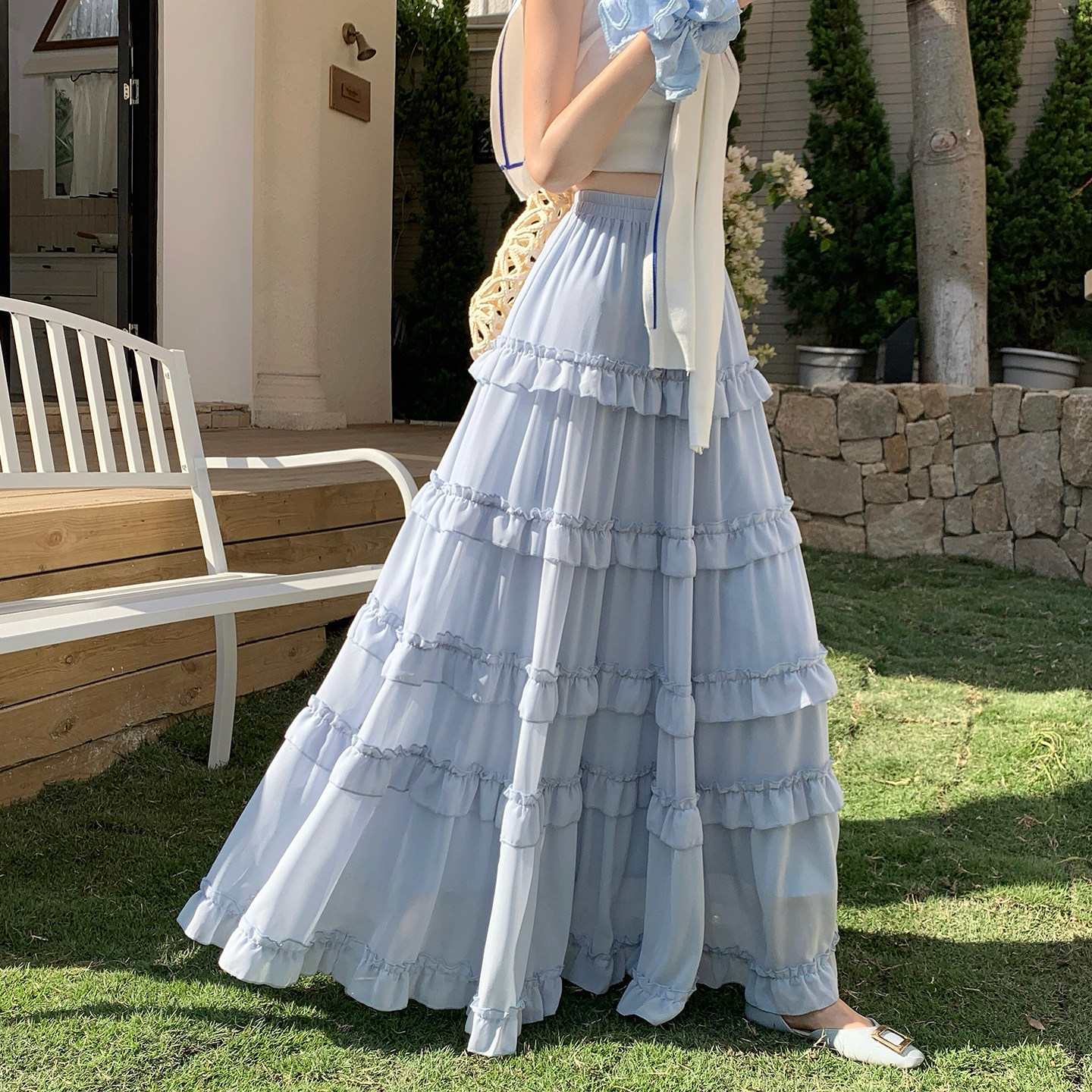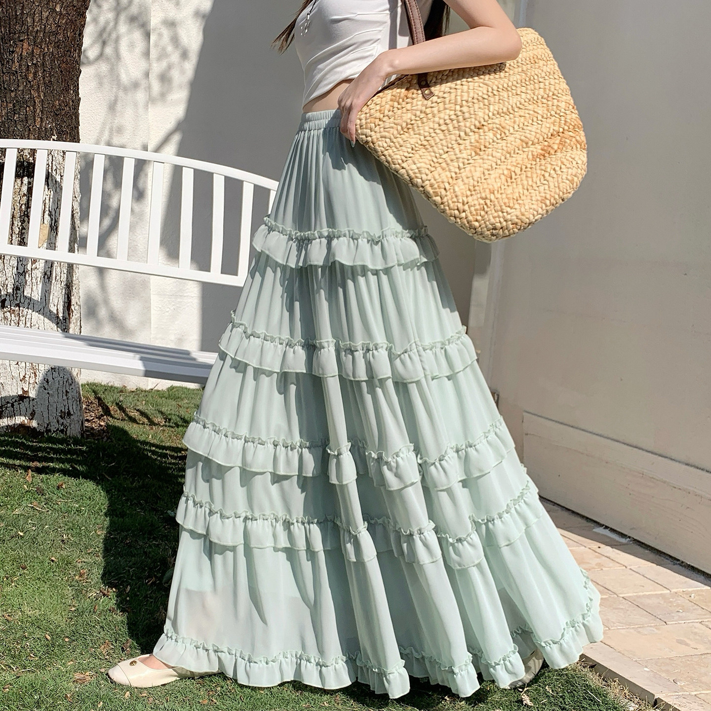 为您提供商品高腰显瘦Aa字裙大摆长裙子 白色荷叶边雪纺蛋糕裙半身裙女2026春季的详细介绍,