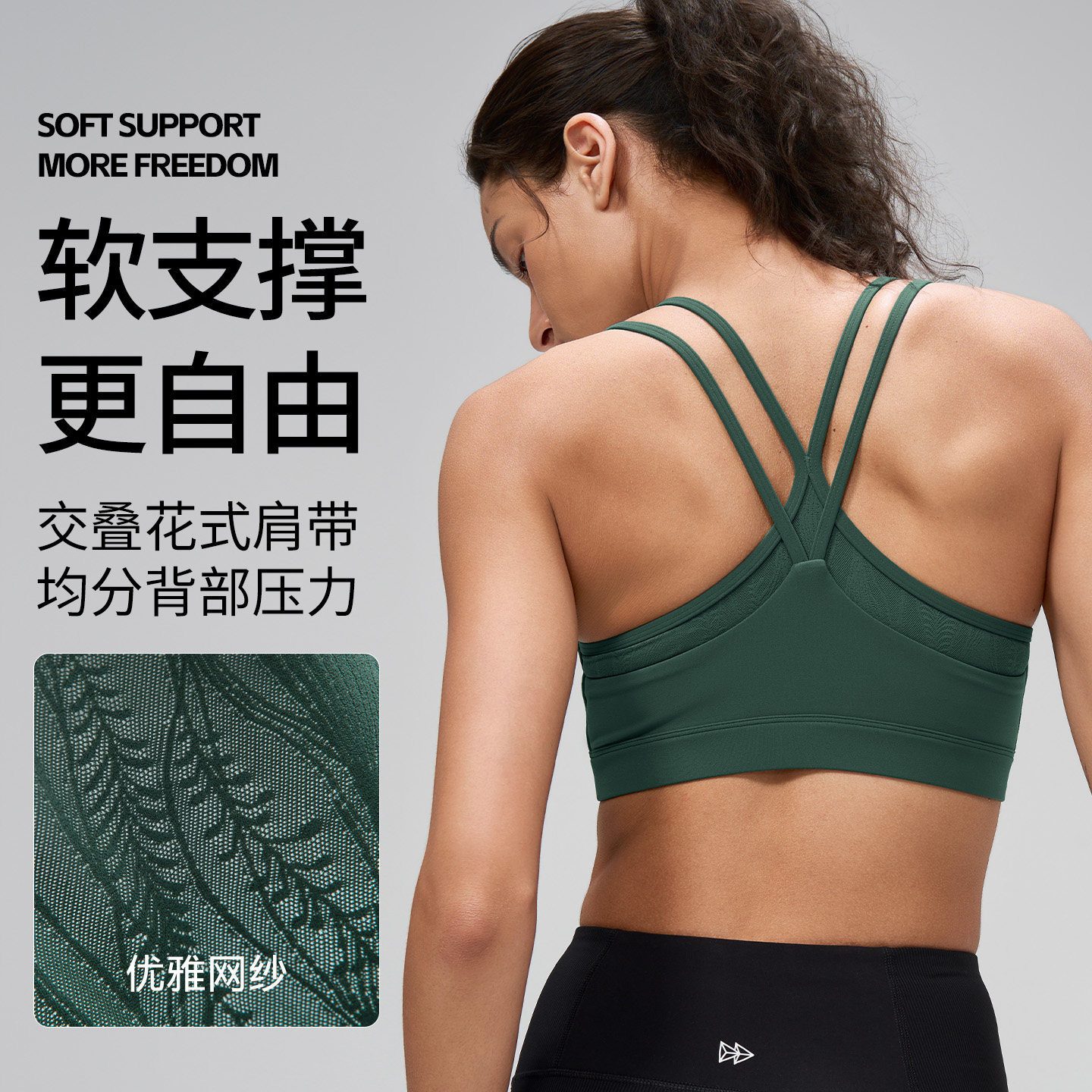 薏凡特 S107134A01 U领交叉肩带低强度运动内衣裸感可拆卸胸垫