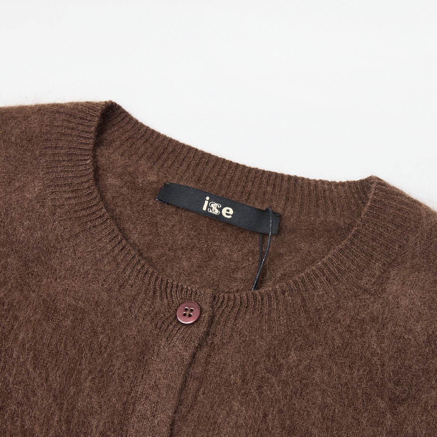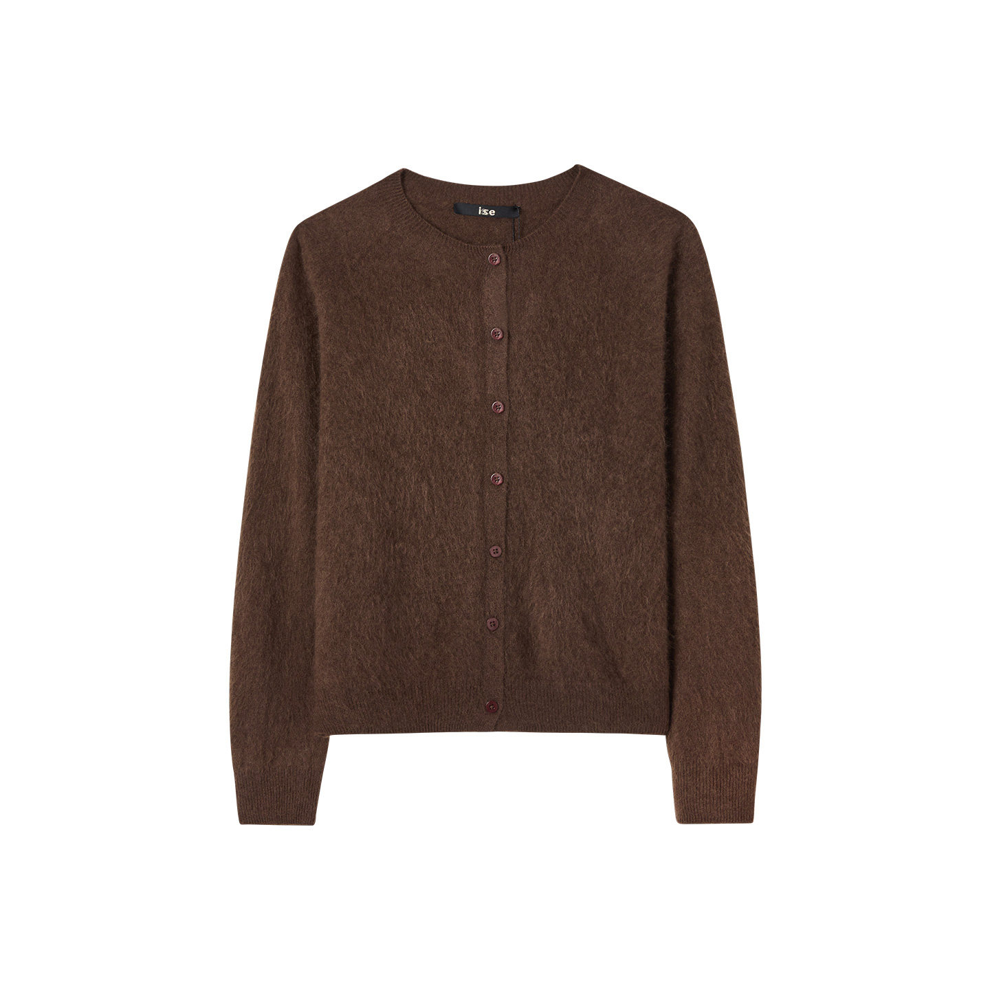 美拉德咖色圆领羊毛羊绒针织开衫 毛衣K2540885W 复古回潮 ise