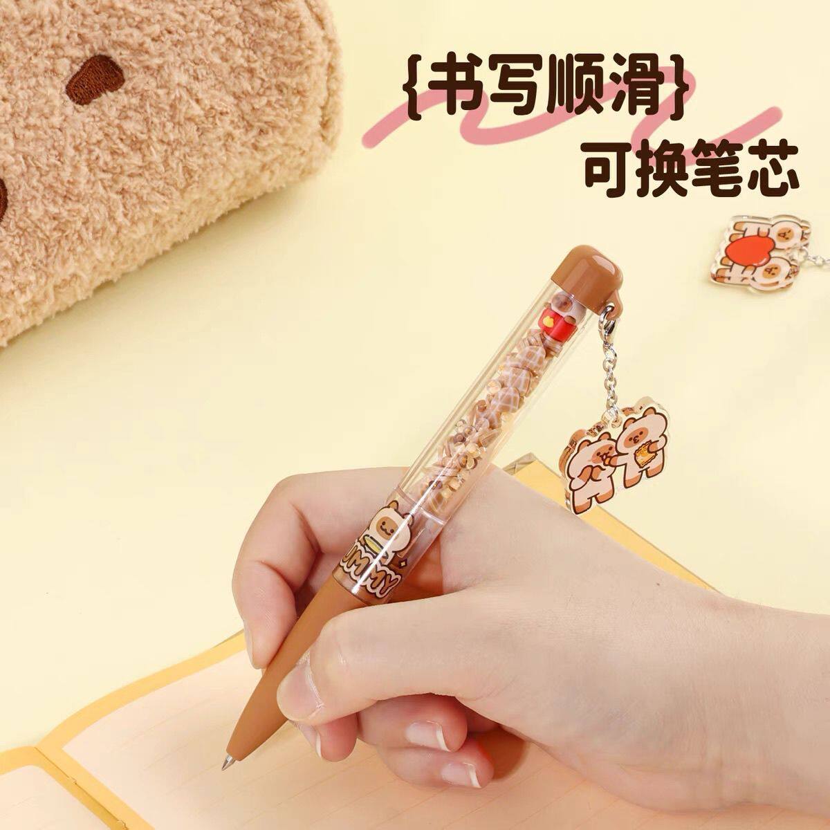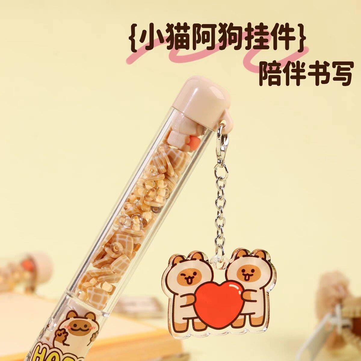 KUKI可奇家小猫阿狗吊牌碎钻挂件可爱黑色高颜值中性笔学生签字笔