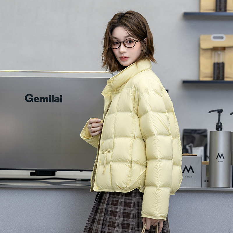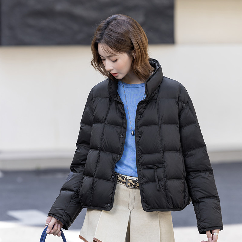新款 云感鹅绒 波司登明星款 错格立领保暖外套 轻薄羽绒服女短款