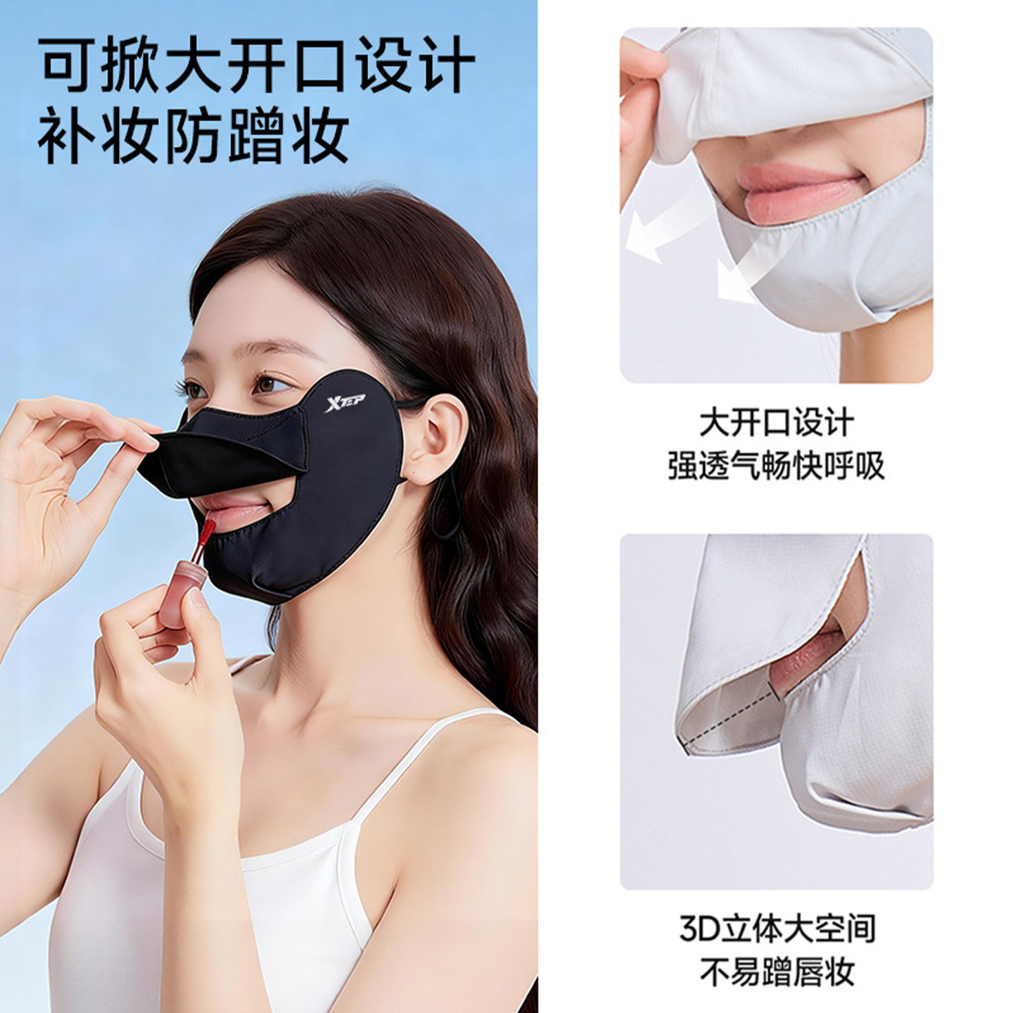 为您提供商品冰丝凉感透气防紫外线防护面罩女 特步护眼角防晒口罩高颜值挂耳式的详细介绍,