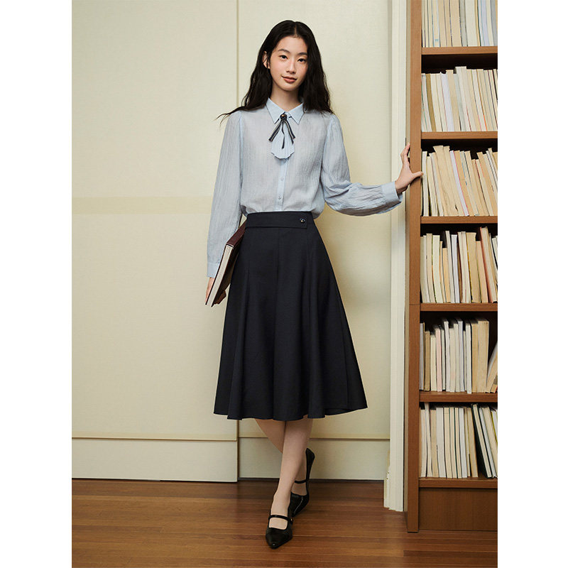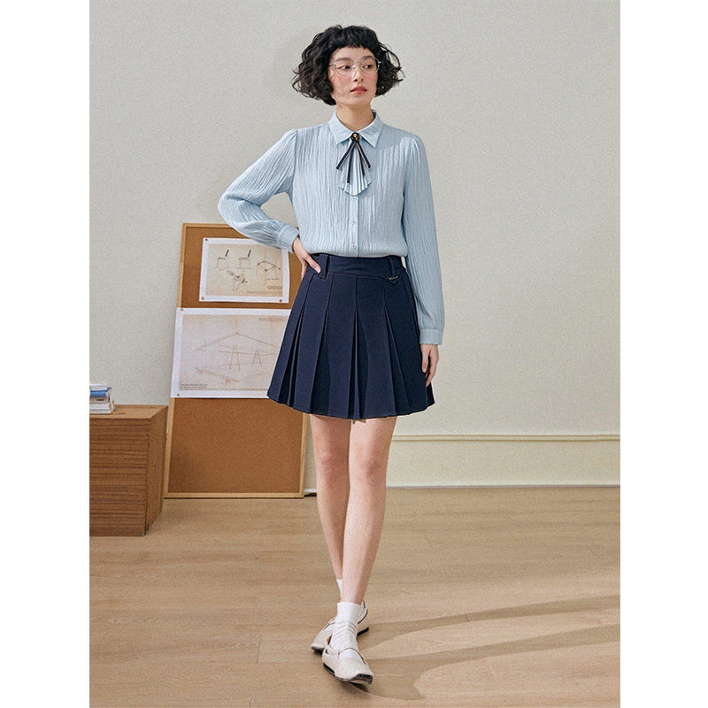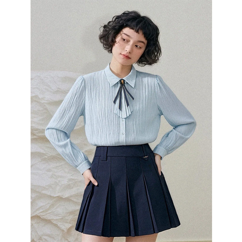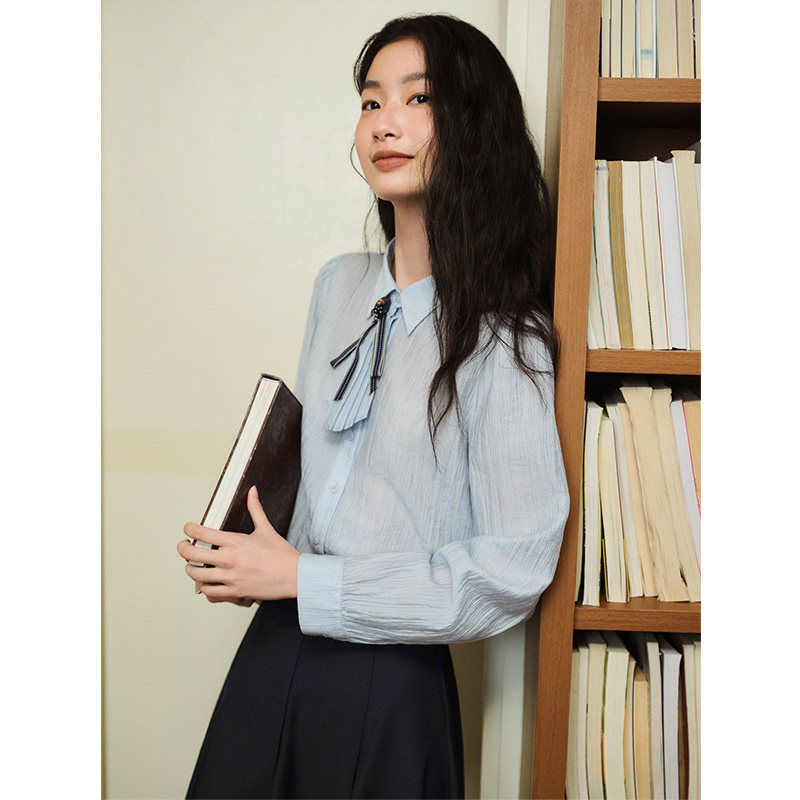 为您提供商品PIT复古长袖 女2026春季 新款 水波纹莱赛尔百搭上衣 翻领衬衫的详细介绍,