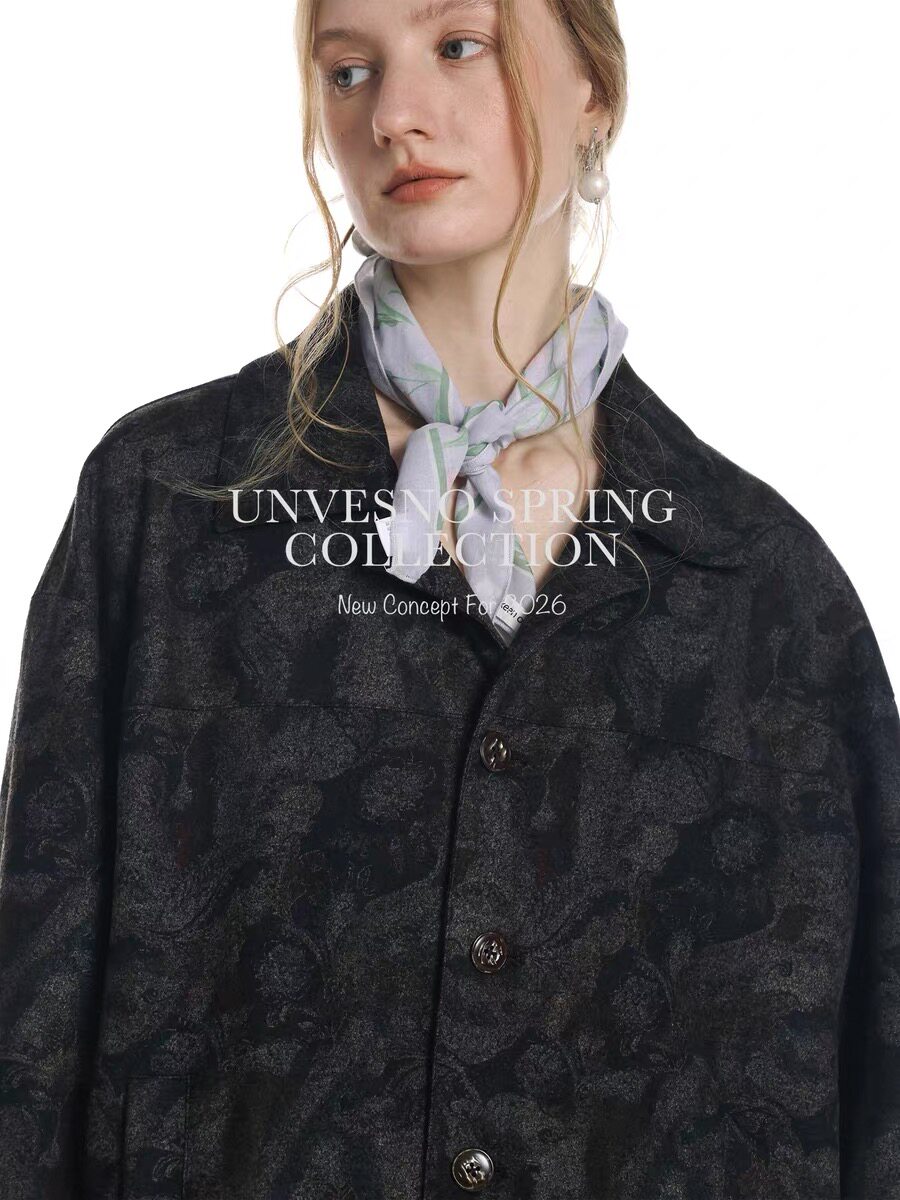 暗纹哑光质感 Unvesno 夹克 静奢中古呢绒暗纹腰果花短款