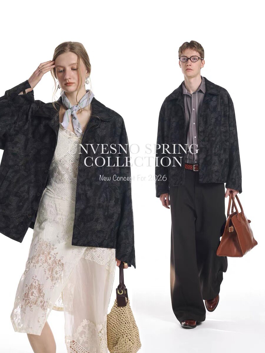 暗纹哑光质感 Unvesno 夹克 静奢中古呢绒暗纹腰果花短款由
