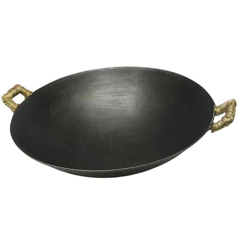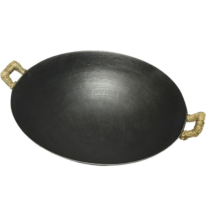 传统双耳生铁炒锅加厚无涂层铸铁锅圆底尖底地锅燃气灶大铁锅 老式