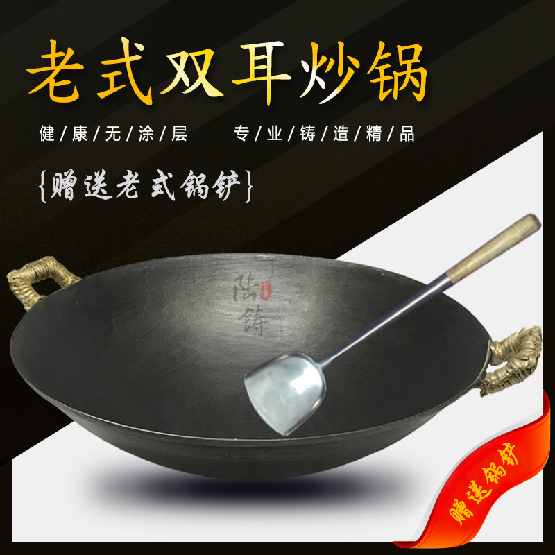 为您提供商品传统双耳生铁炒锅加厚无涂层铸铁锅圆底尖底地锅燃气灶大铁锅 老式的详细介绍,