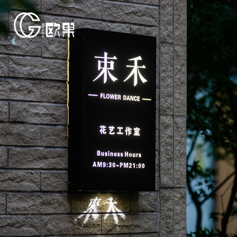 招牌定制发光创意铁艺不锈钢户外背发光投影镂空灯箱门头招牌定做