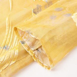 安妮不火 不规则长裙子 碎花荷叶边V领雪纺度假连衣裙女春微胖大码