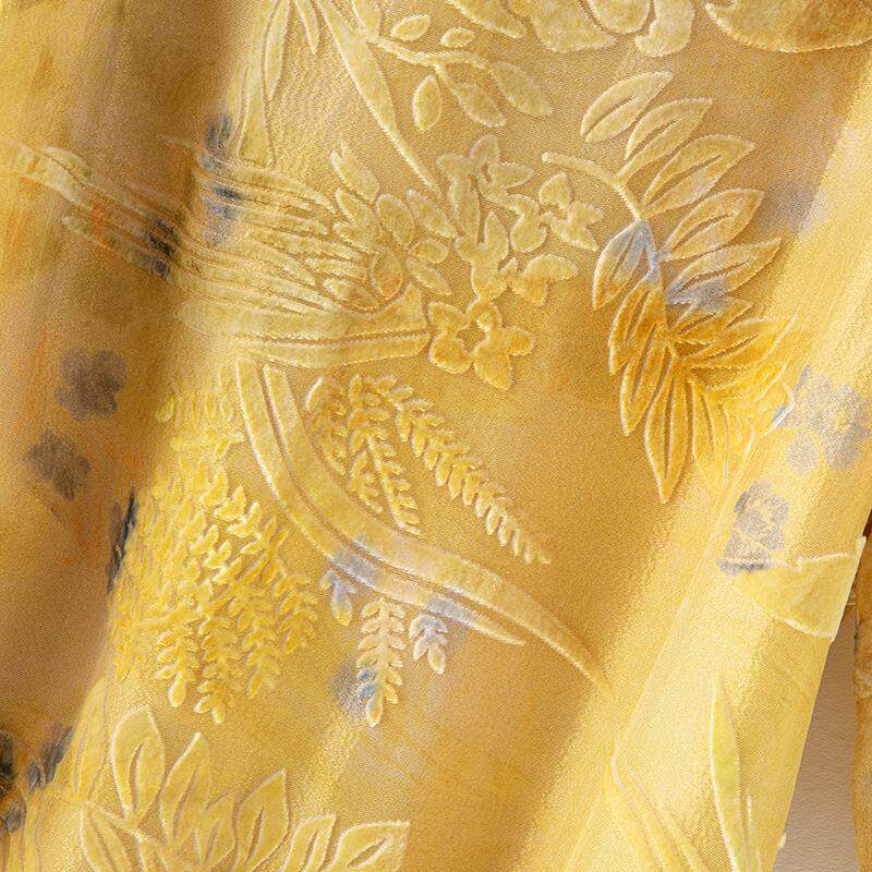 Hotdog 花落梦夕 收腰显瘦V领木耳边繁花长袖 连衣裙 热狗很辣